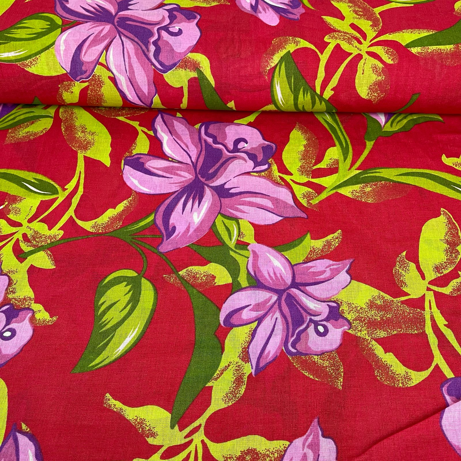 Chita Maxi Floral Fundo Vermelho Flores Rosa