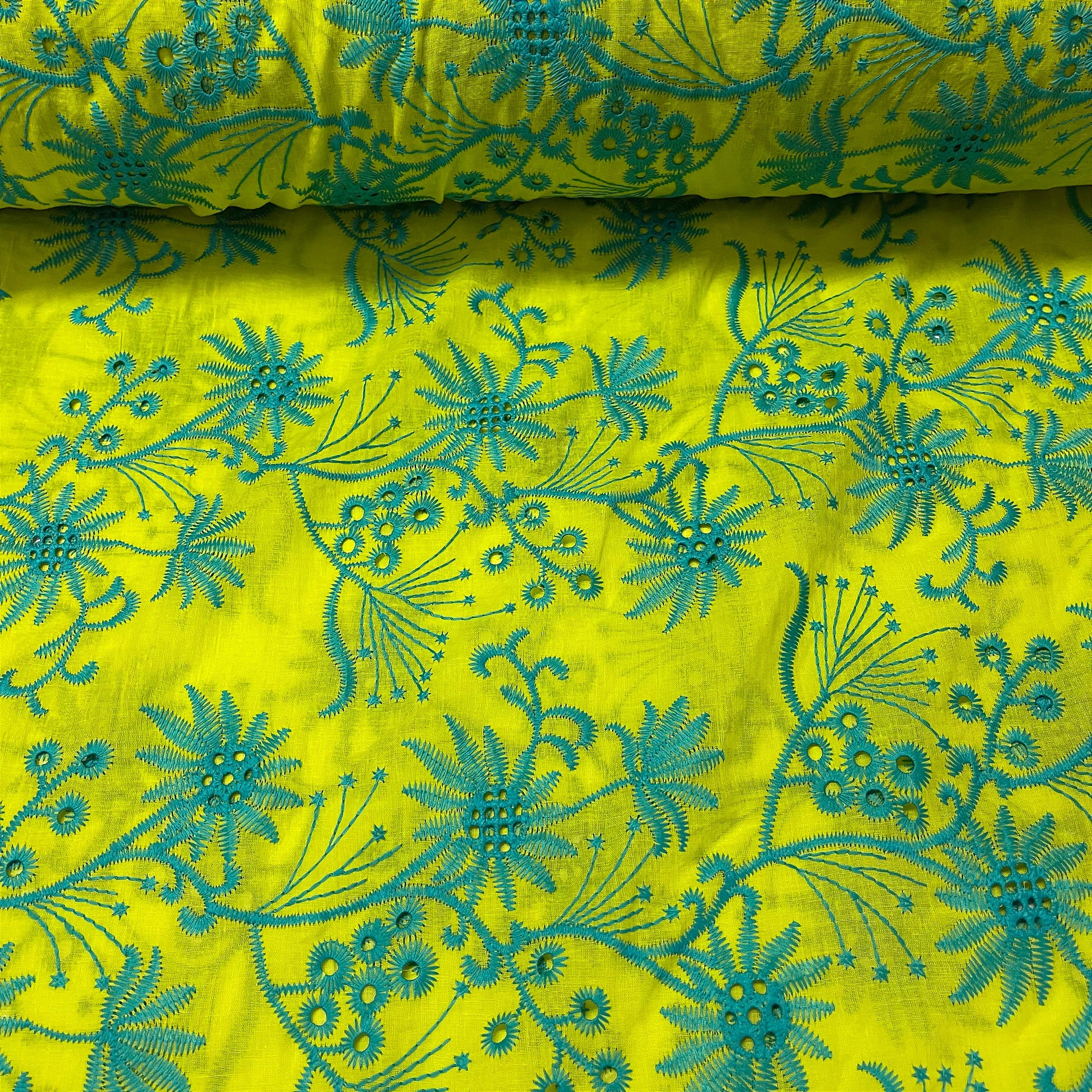 Laise Bicolor Bordada Amarelo com Folhagem Verde