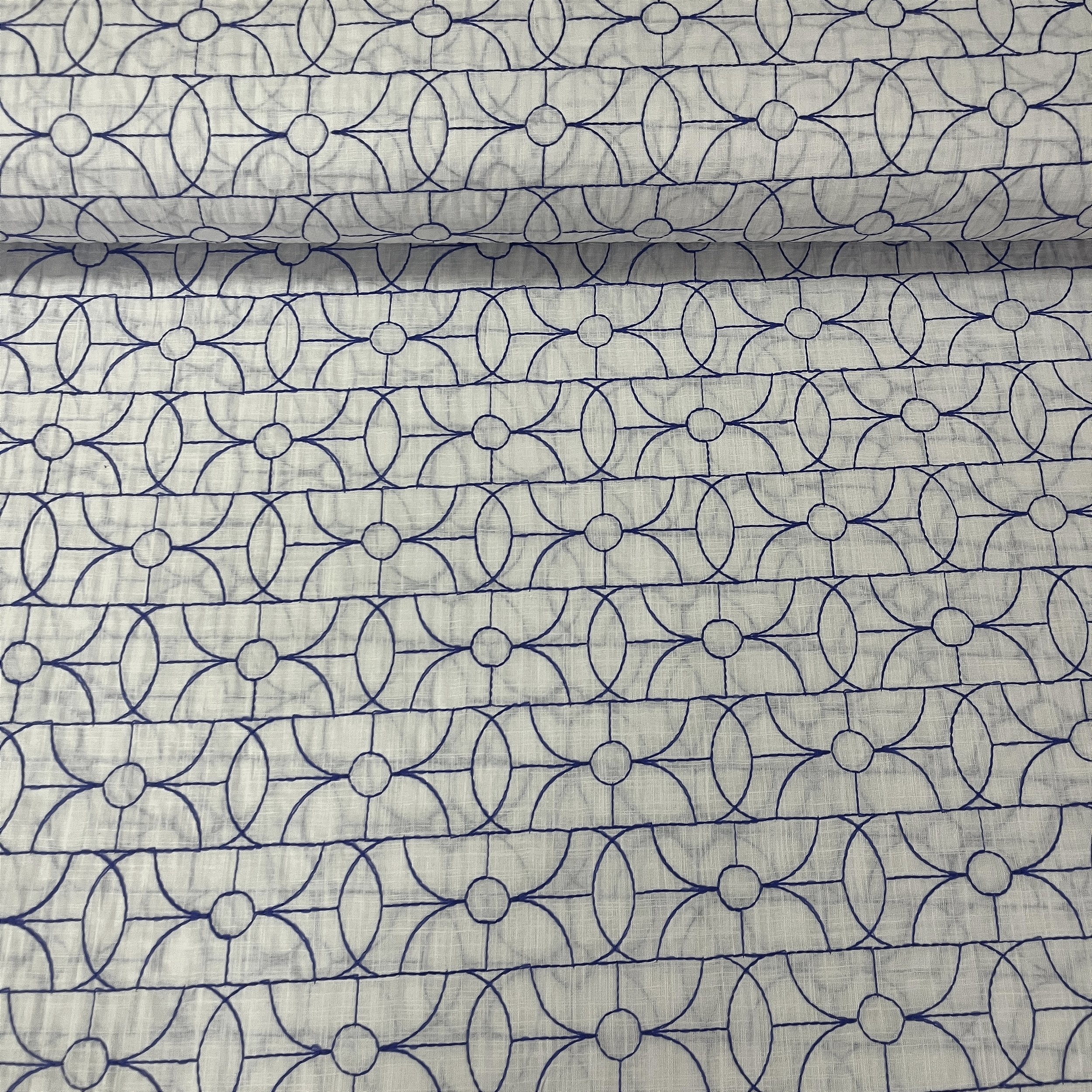 Laise Bicolor Bordada Branca com Azul Geométrica