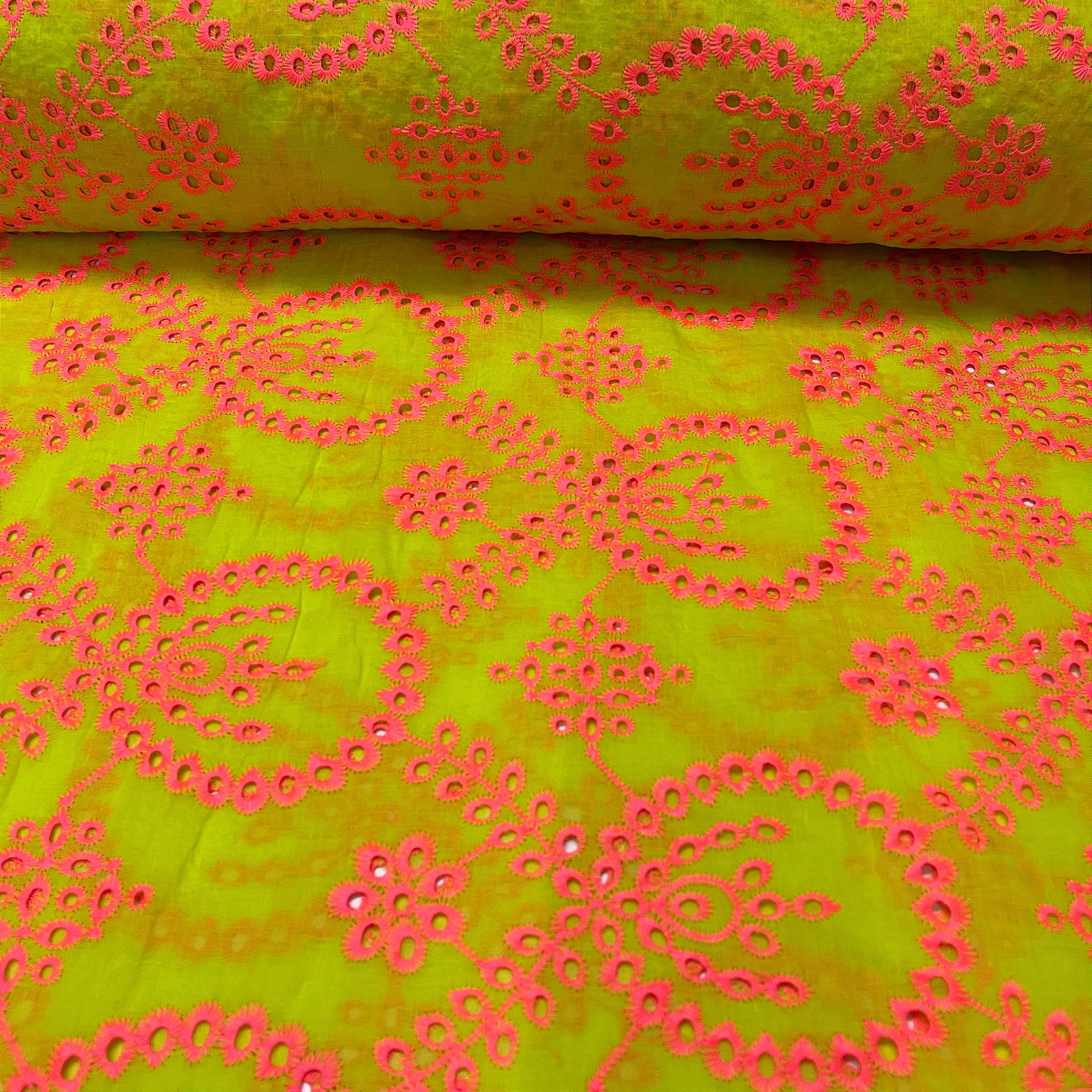 Laise Bordada Bicolor Amarelo com Laranja Neon