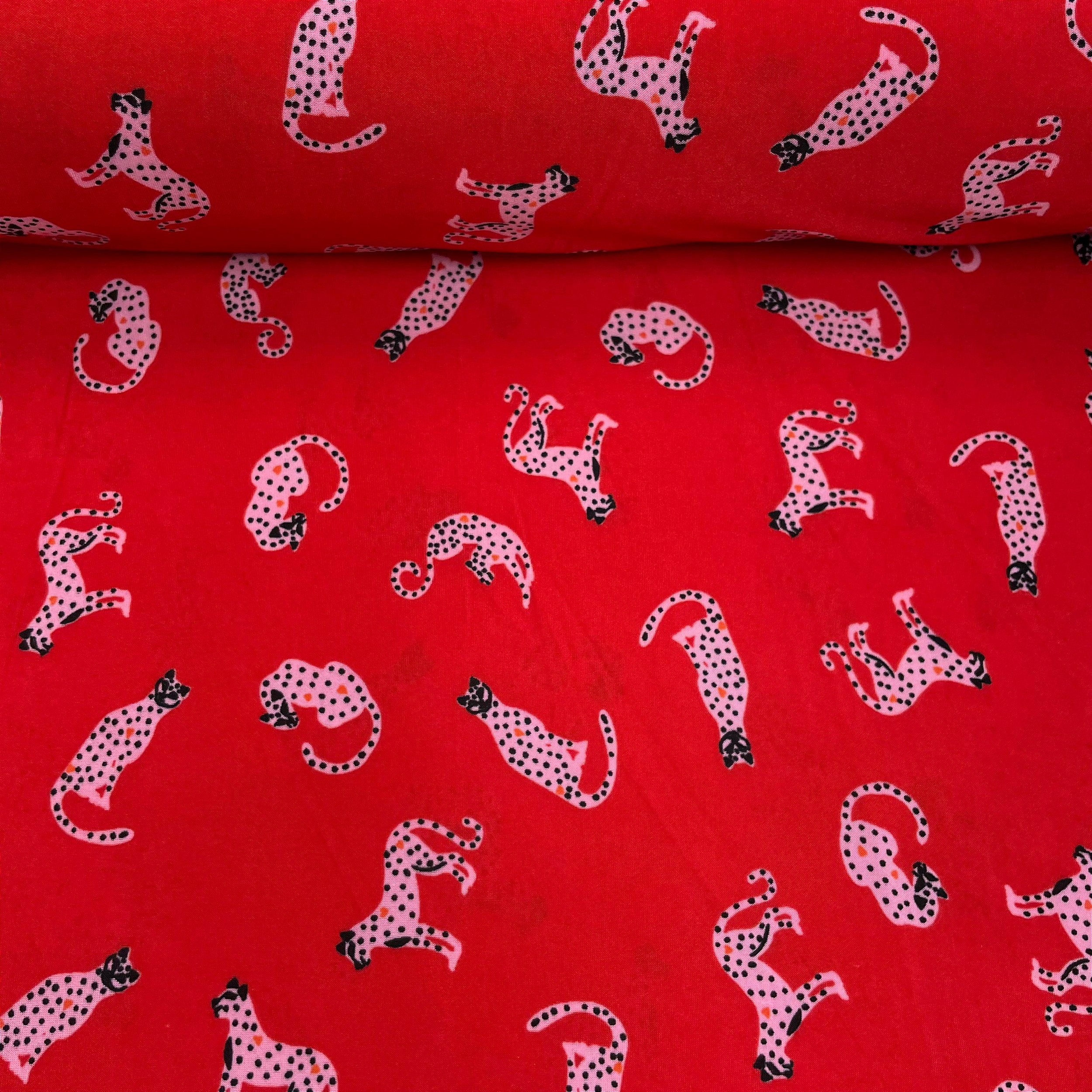 Liganete Estampada Fundo Vermelho com Leopardo Rosa