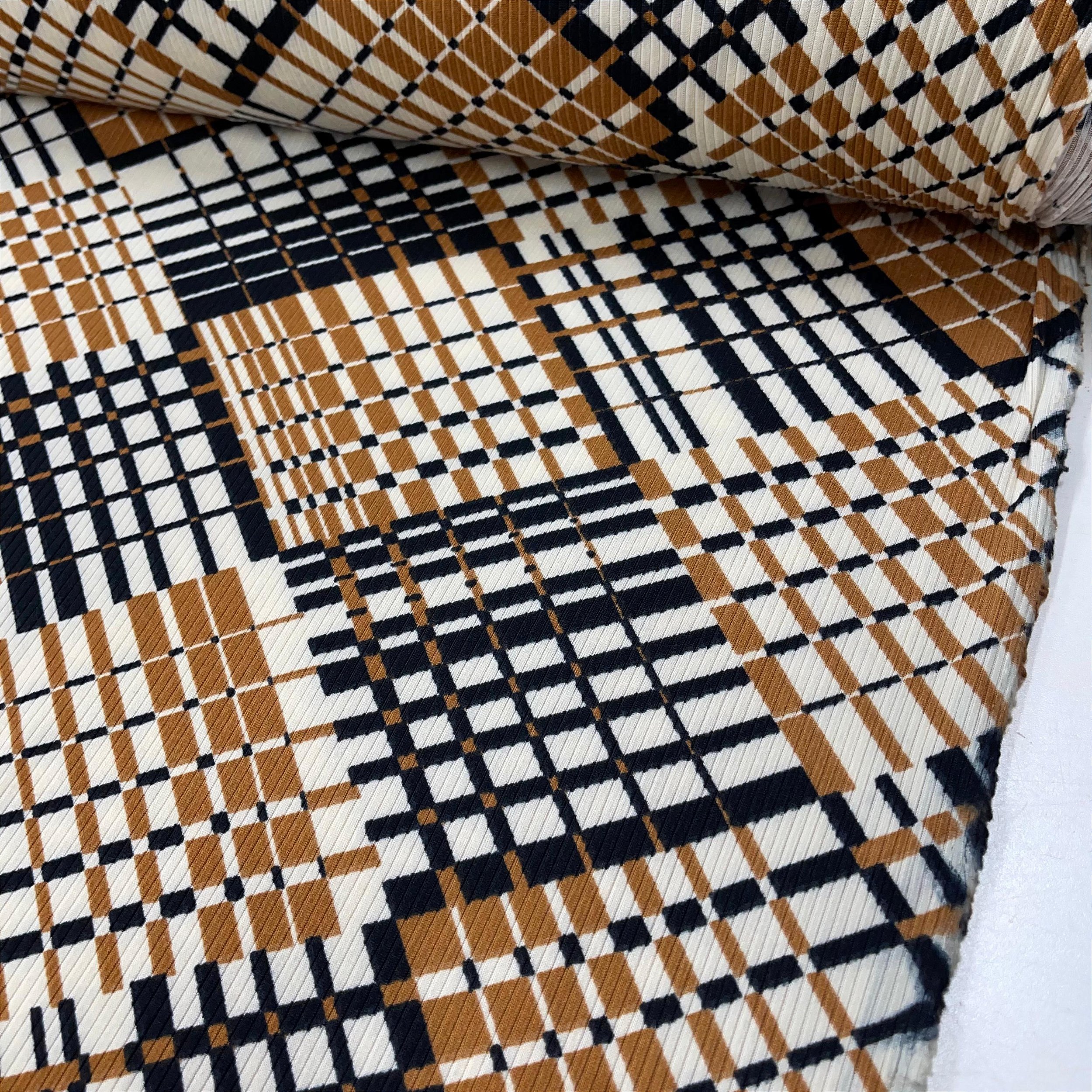 Malha Cotele Estampada Bege, Caramelo e Preto