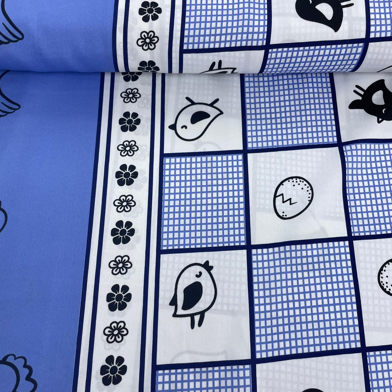 Oxford Estampado Barrado com Galinha e Xadrez Azul