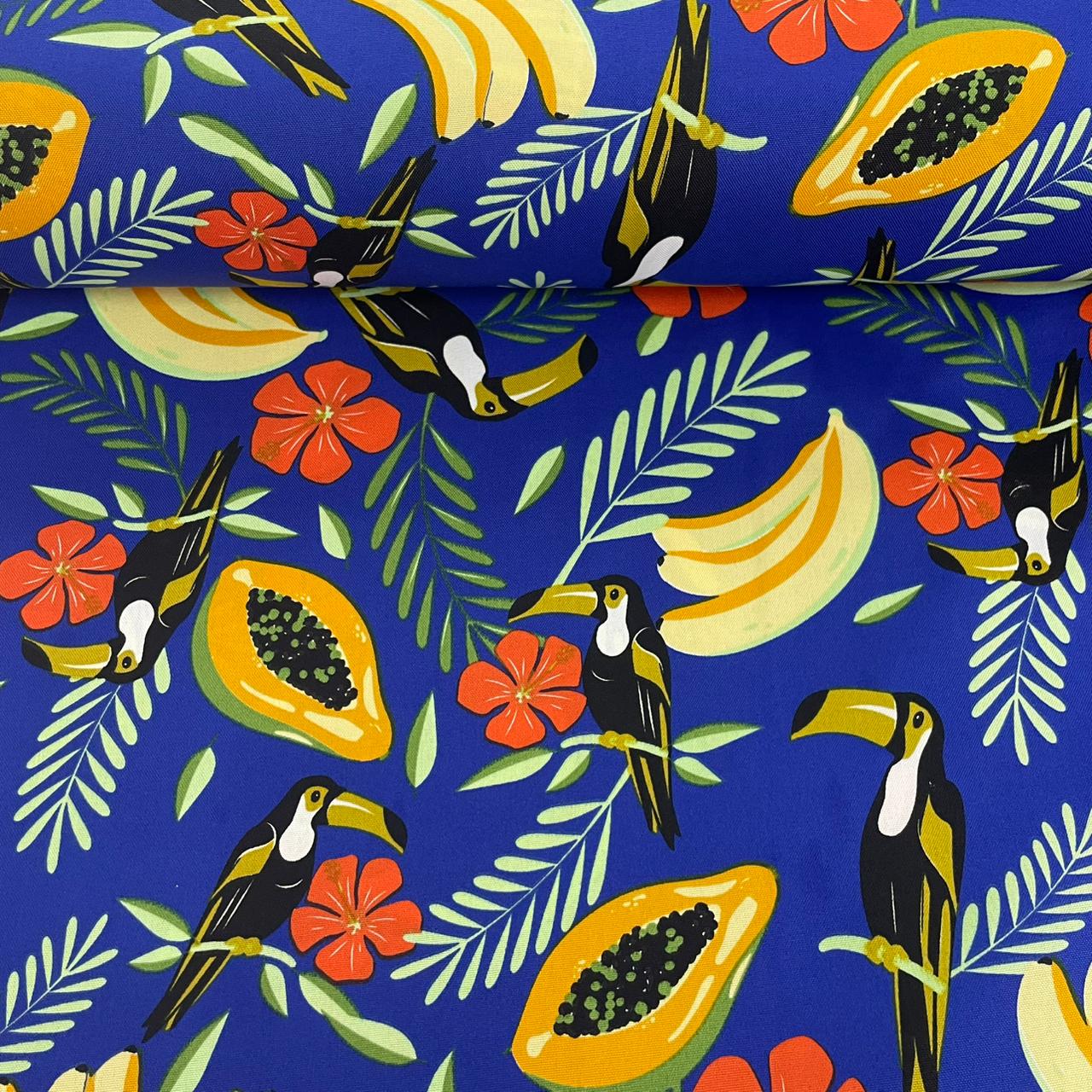 Oxford Estampado Fundo Azul Royal com Frutas e Tucanos