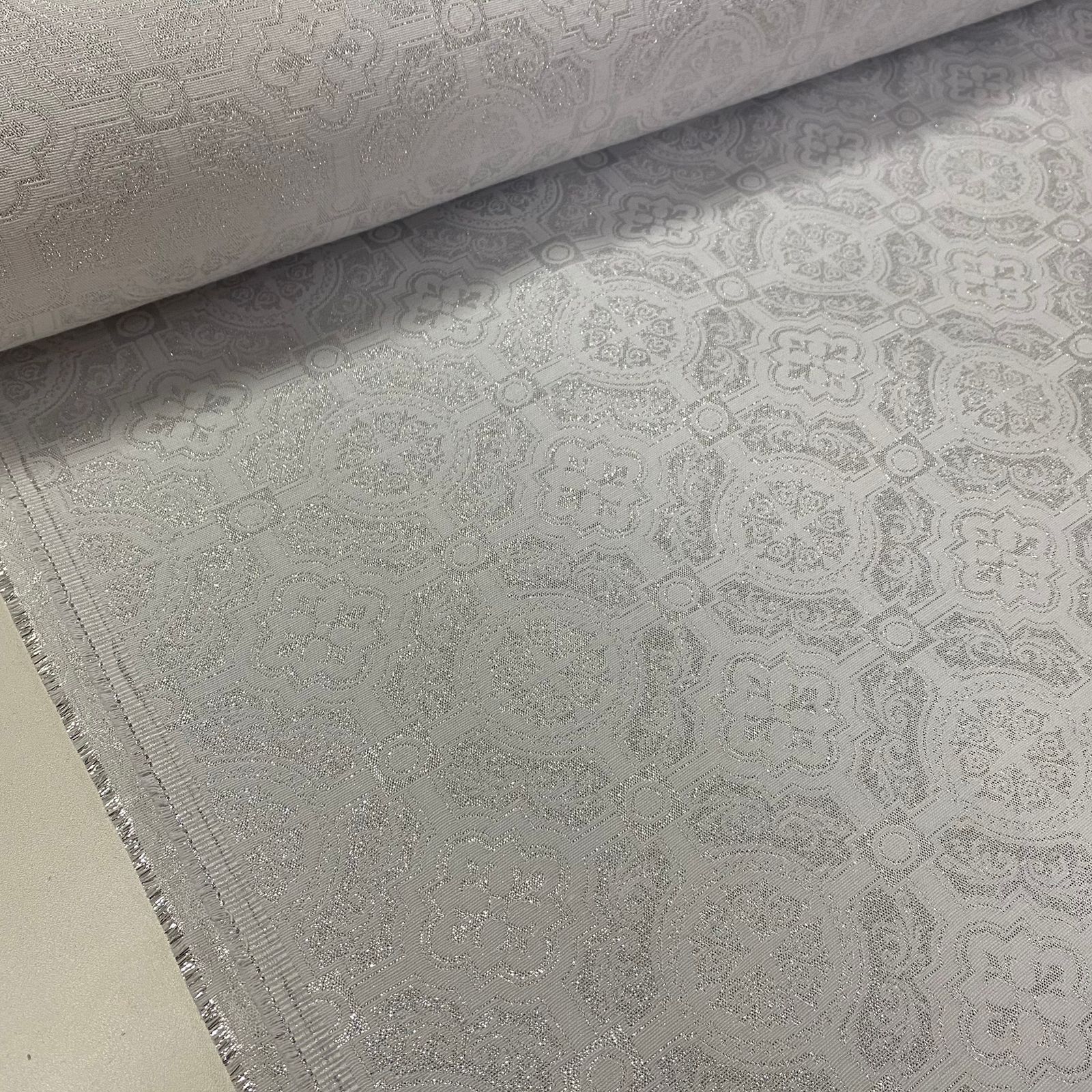 Produzido em jacquard, conta com desenhos trabalhados como marca d'água, além do brilho acetinado. Com toque macio e bom caimento, é ideal para a confecção de artigos de vestuário e decoração com temática litúrgica.