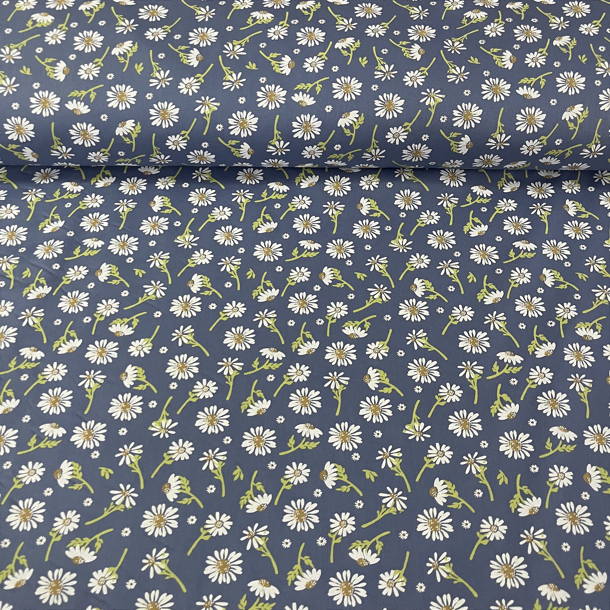 Tricoline Estampada Bahamas Fundo Azul Com Margaridas