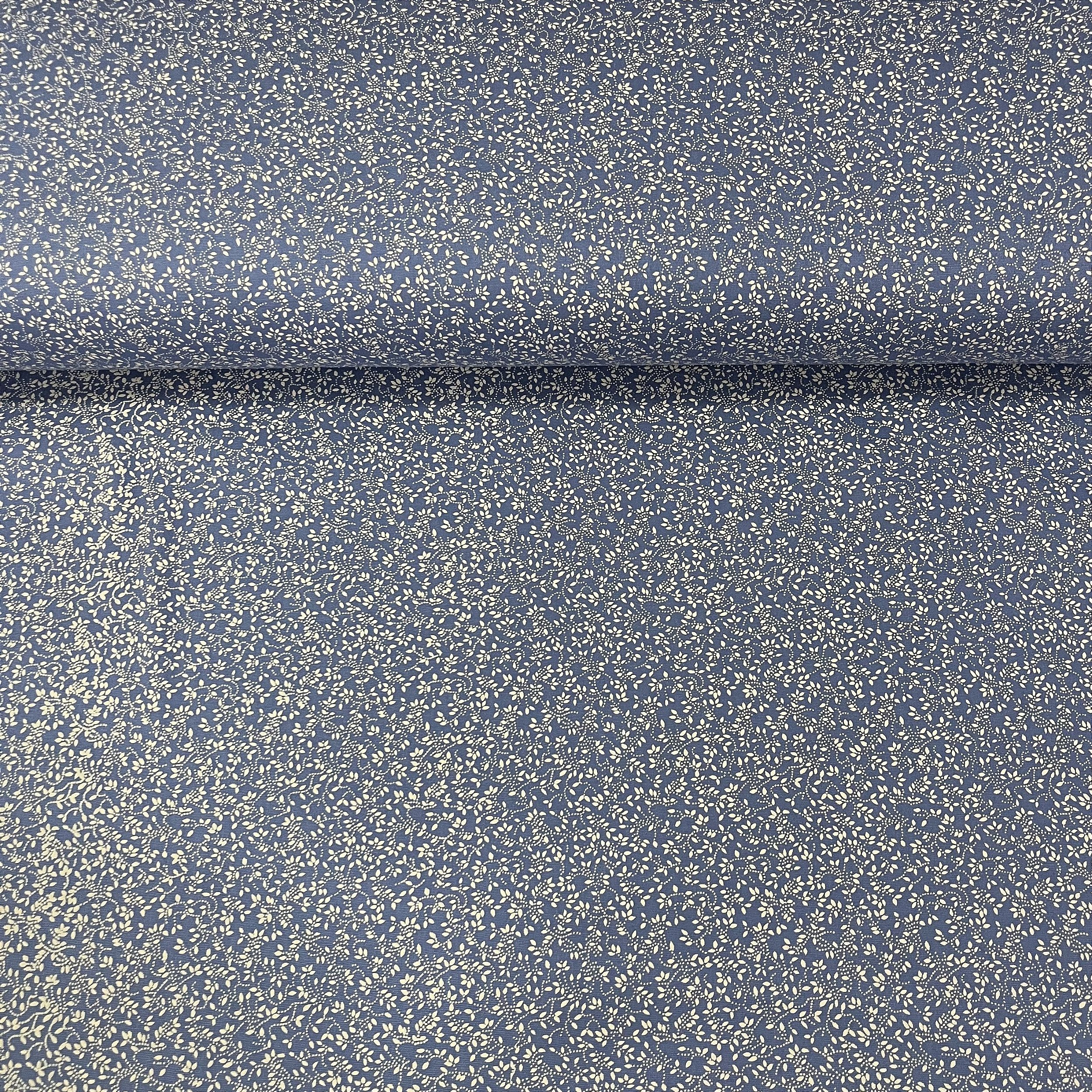 Tricoline Estampada Bahamas Fundo Azul Com Ramos Marfim