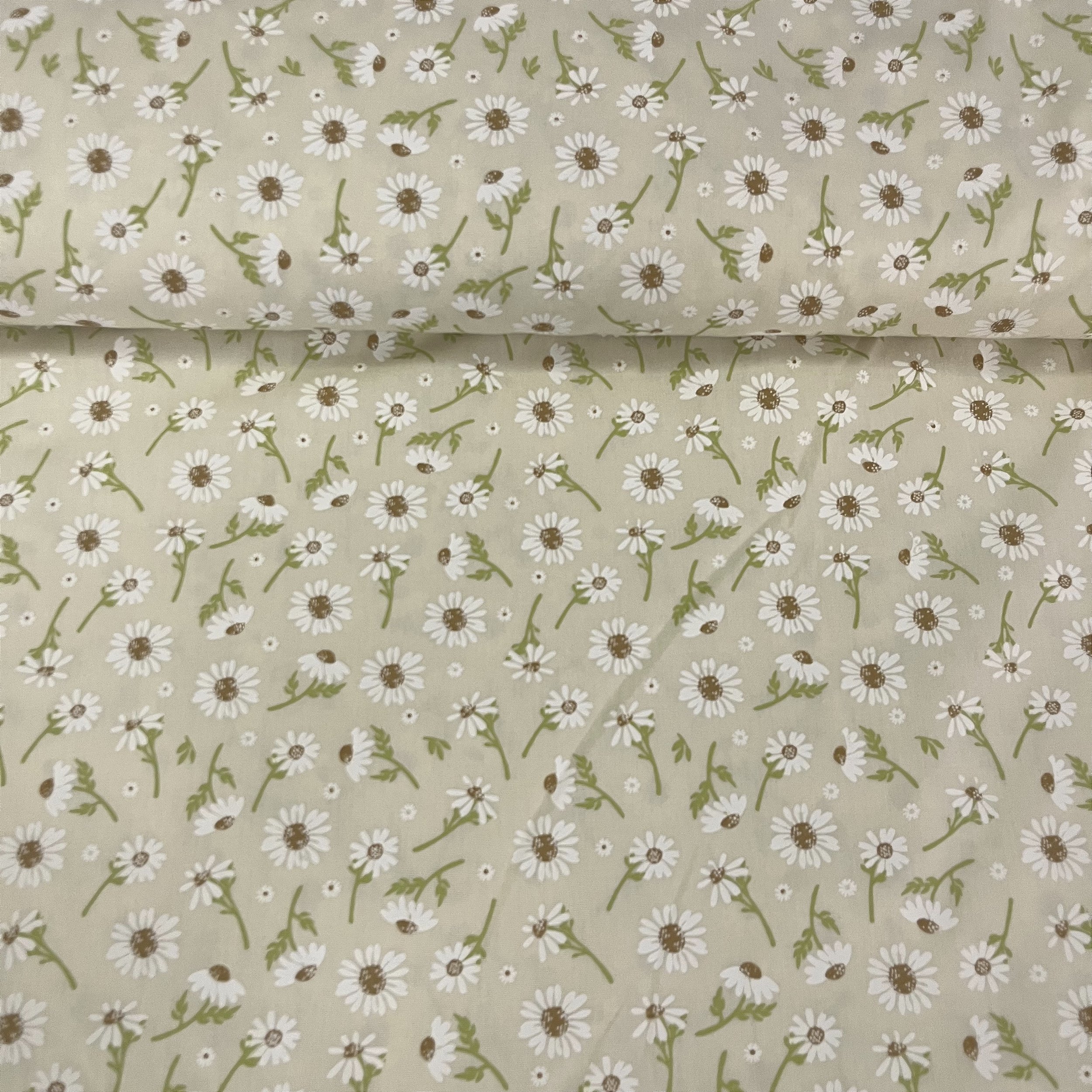 Tricoline Estampada Bahamas Fundo Bege Com Flores Brancas