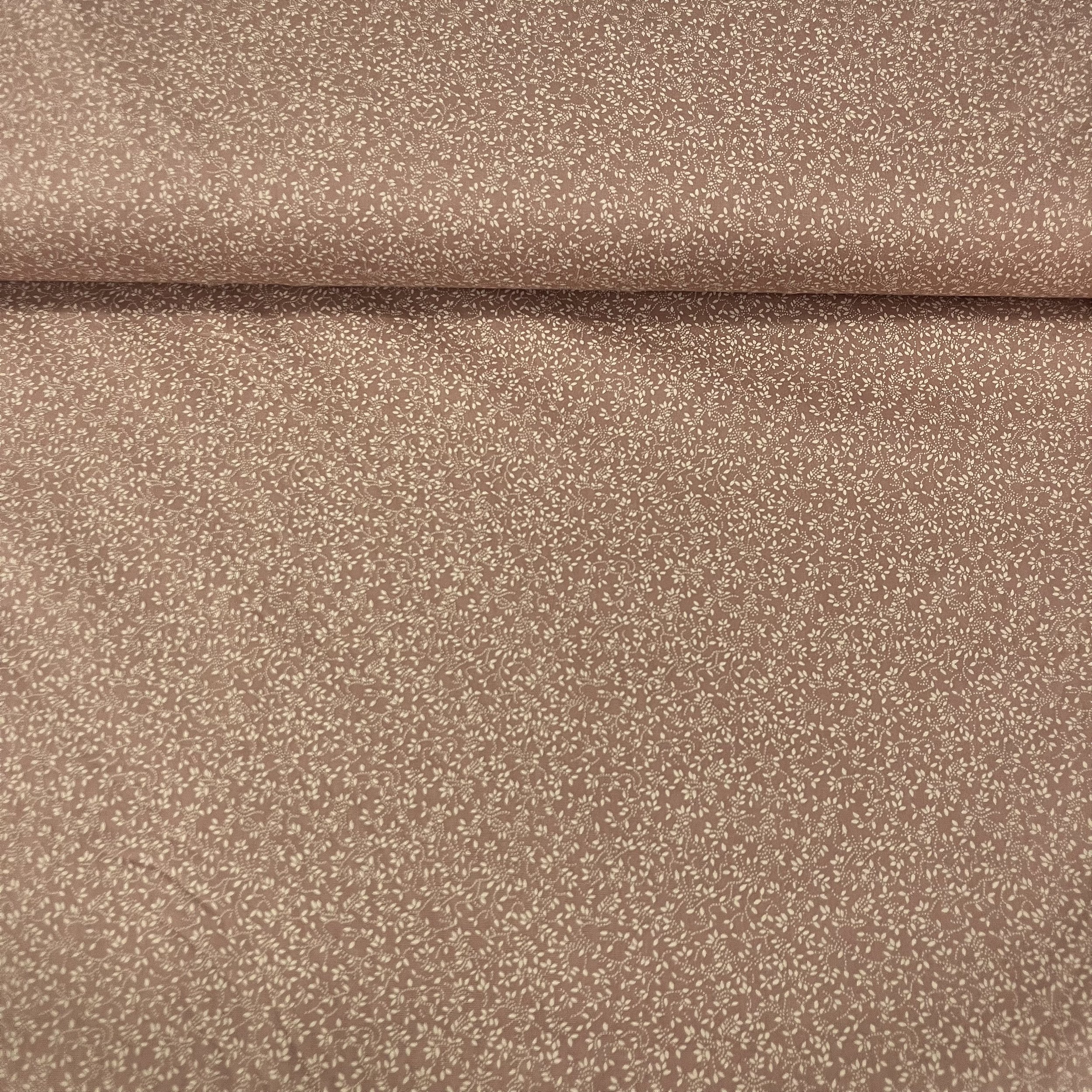 Tricoline Estampada Bahamas Fundo Marrom Com Ramos Beges