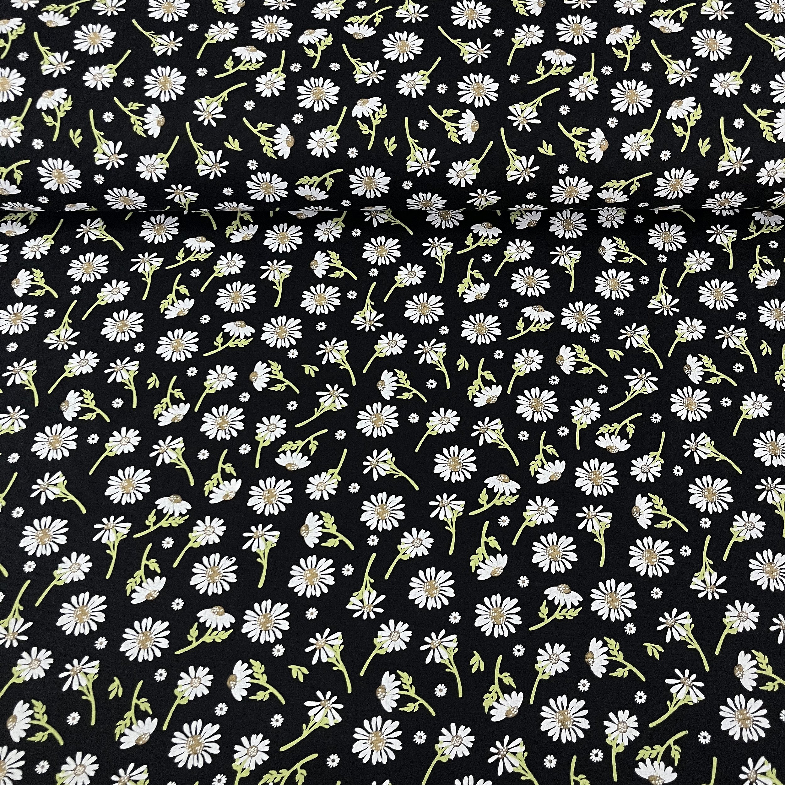 Tricoline Estampada Bahamas Fundo Preto Com Margaridas