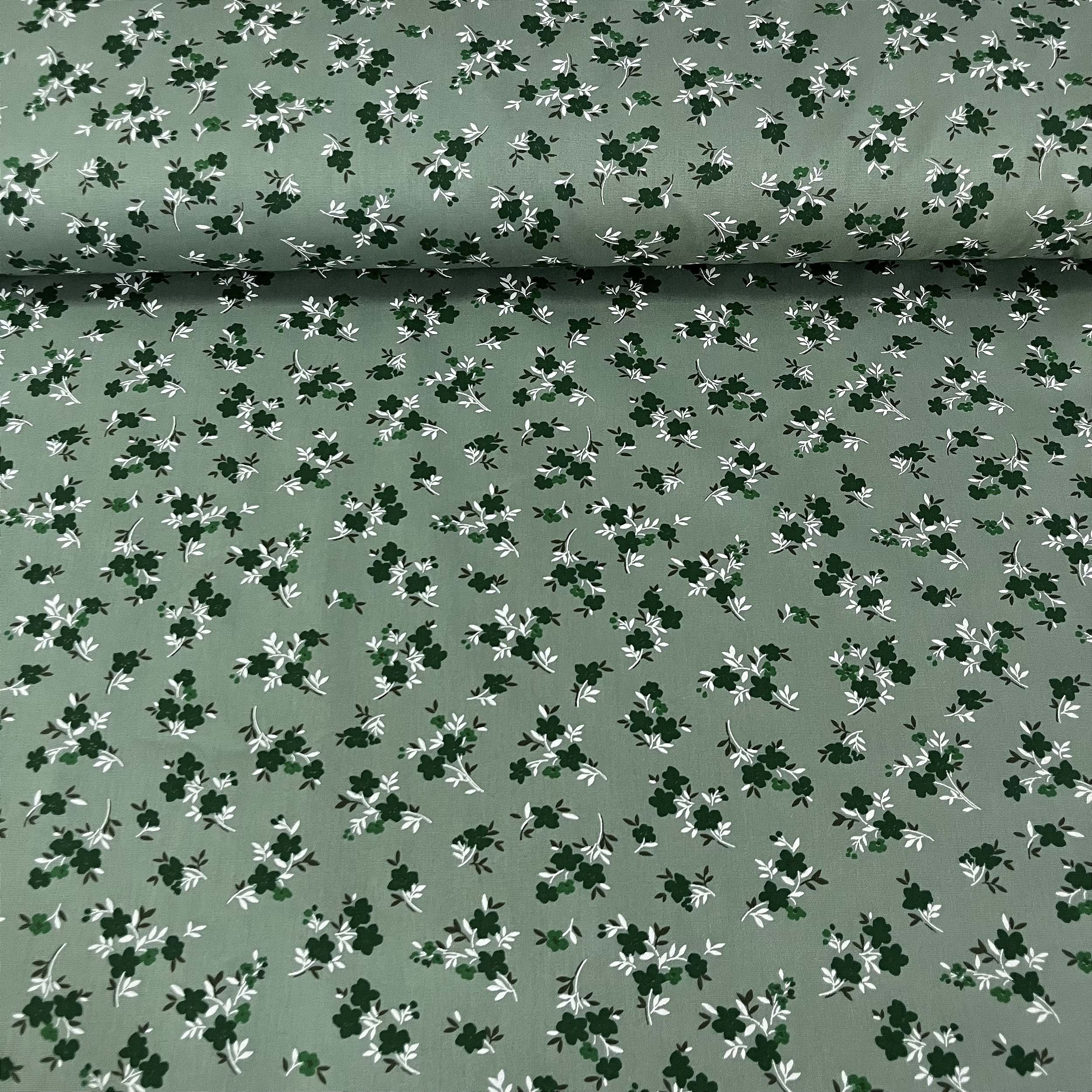 Tricoline Estampada Bahamas Fundo Verde Alecrim Com Flores Verde Escuro