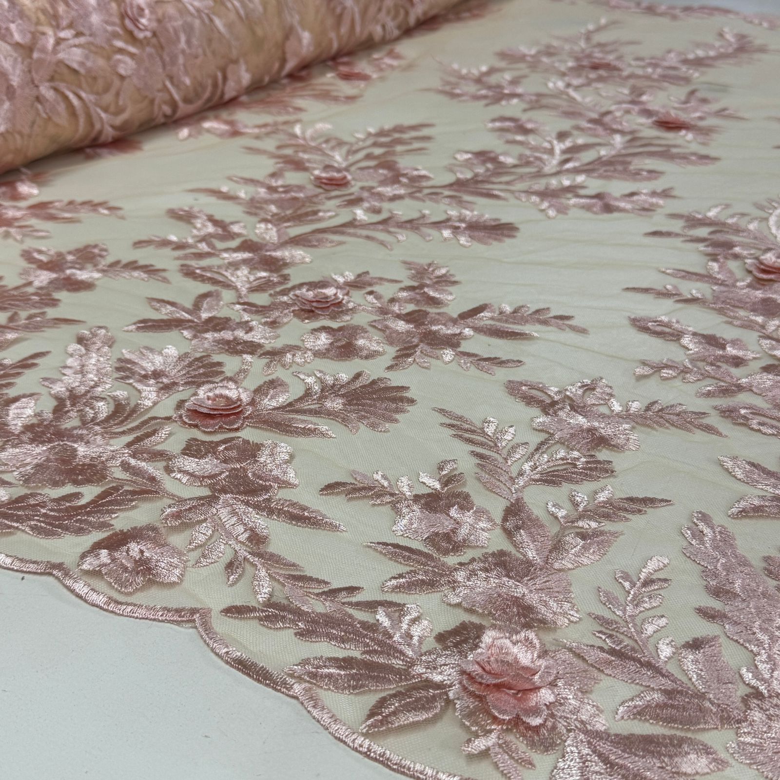 O Tule Bordado 3D London é um Tule bordado sintético com suas flores em 3D, tornando este um material sofisticado. Seu desenho, lembra as ramas das folhagens trazendo um ar de natureza ao material. Ele é barrado de diferentes maneiras em cada lado, fazendo com que tenha um lado certo para a montagem das peças. Esse material com certeza vai trazer um elegancia para sua peça!