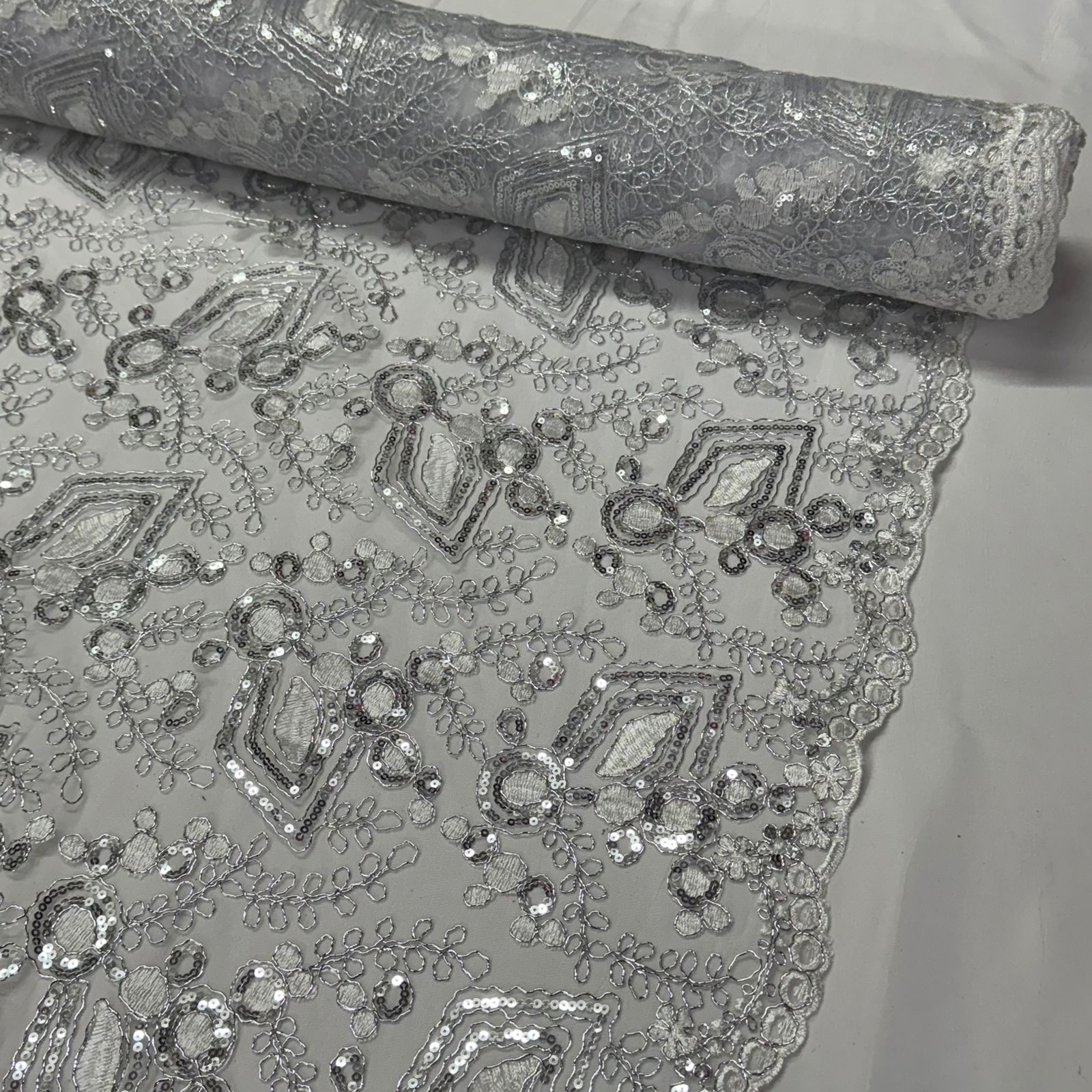 Tule Bordado Fio Metalic é um produto utilizado principalmente para confecção de saias, vestidos, roupas de religião e de moda noiva e festa em geral. Tambem é utilizado recortes para aplicação.