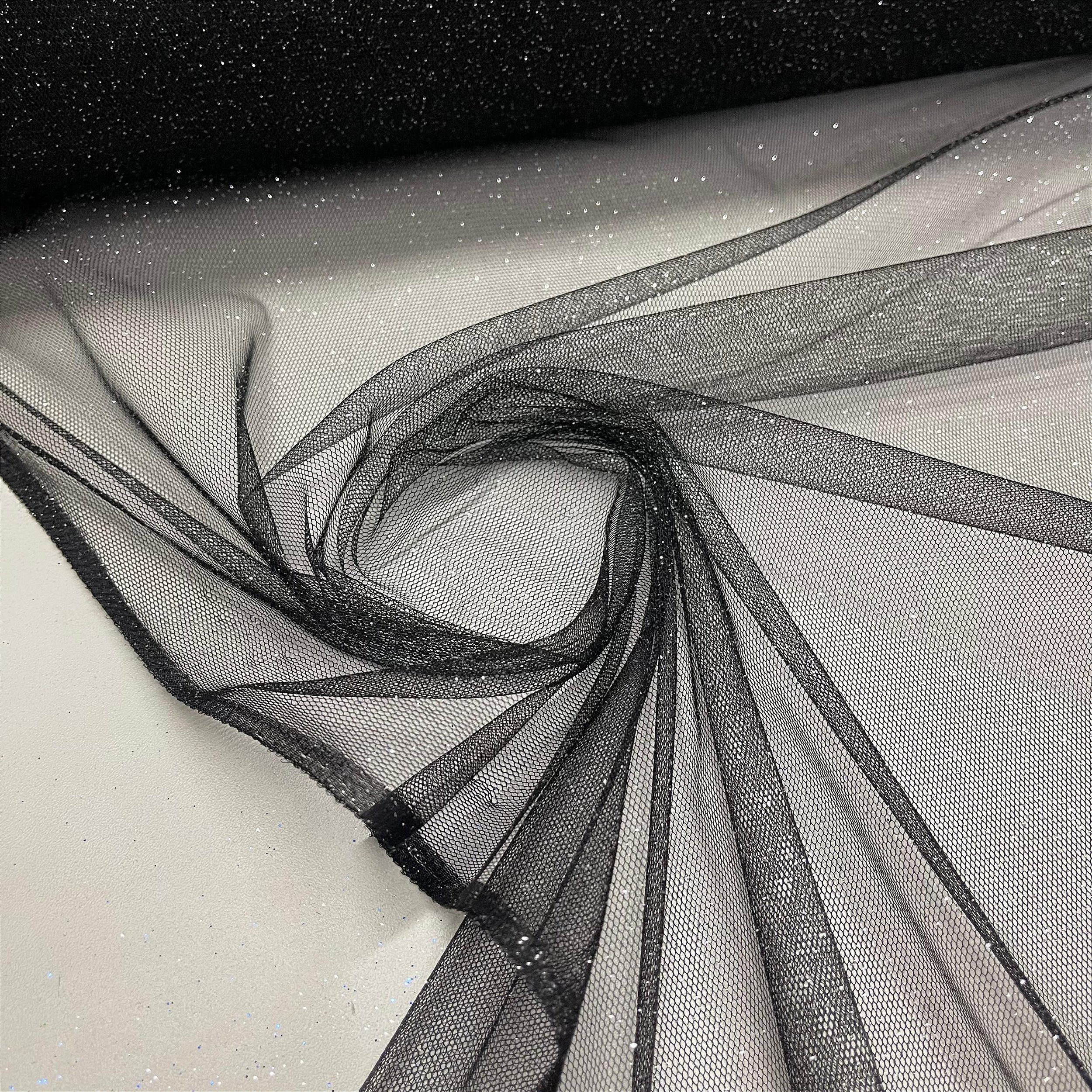 Tule com glitter é um tecido leve, translúcido e brilhante, decorado com glitter para um efeito glamoroso. É usado em roupas de festa, acessórios e decoração de eventos, proporcionando um toque sofisticado e festivo.