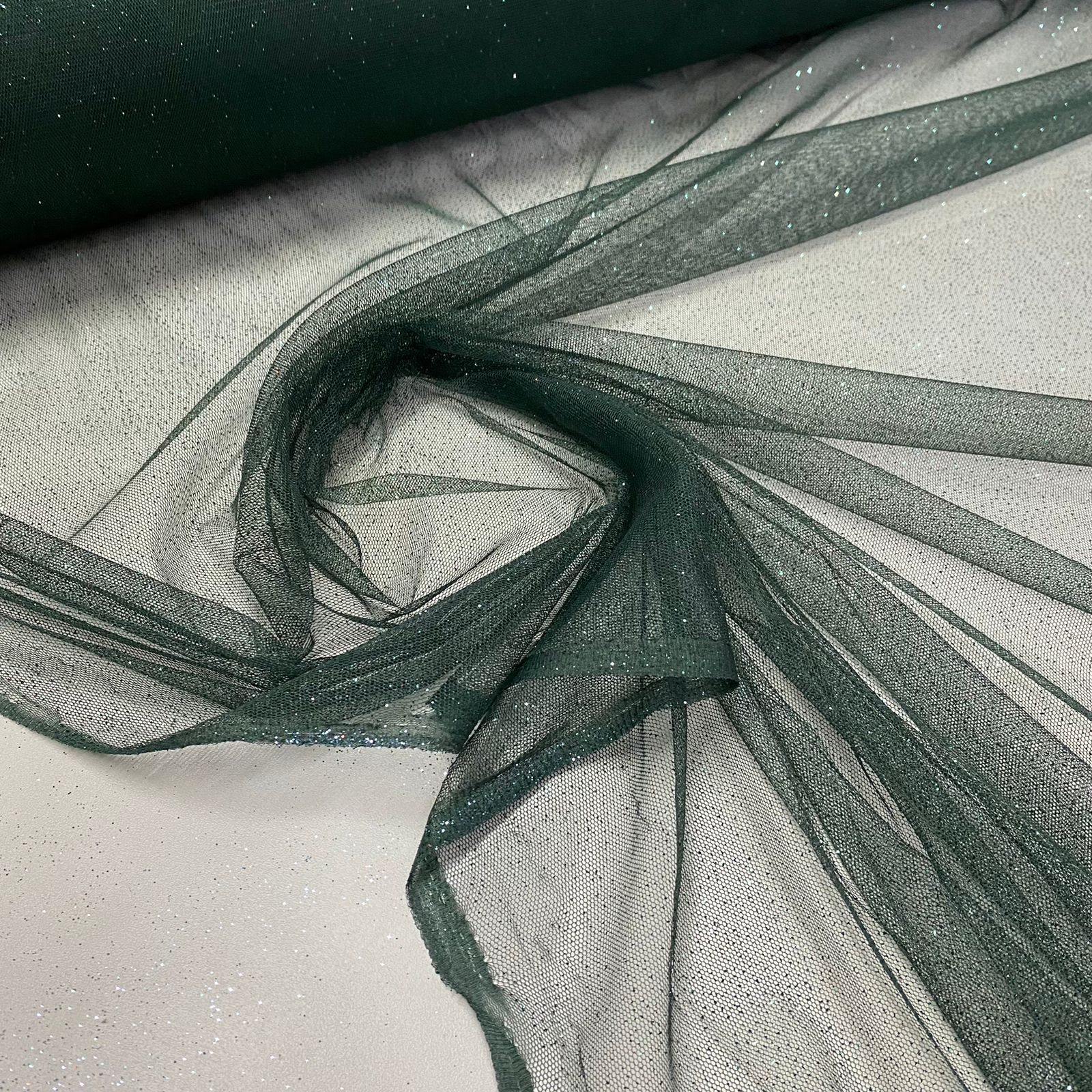 Tule com glitter é um tecido leve, translúcido e brilhante, decorado com glitter para um efeito glamoroso. É usado em roupas de festa, acessórios e decoração de eventos, proporcionando um toque sofisticado e festivo.