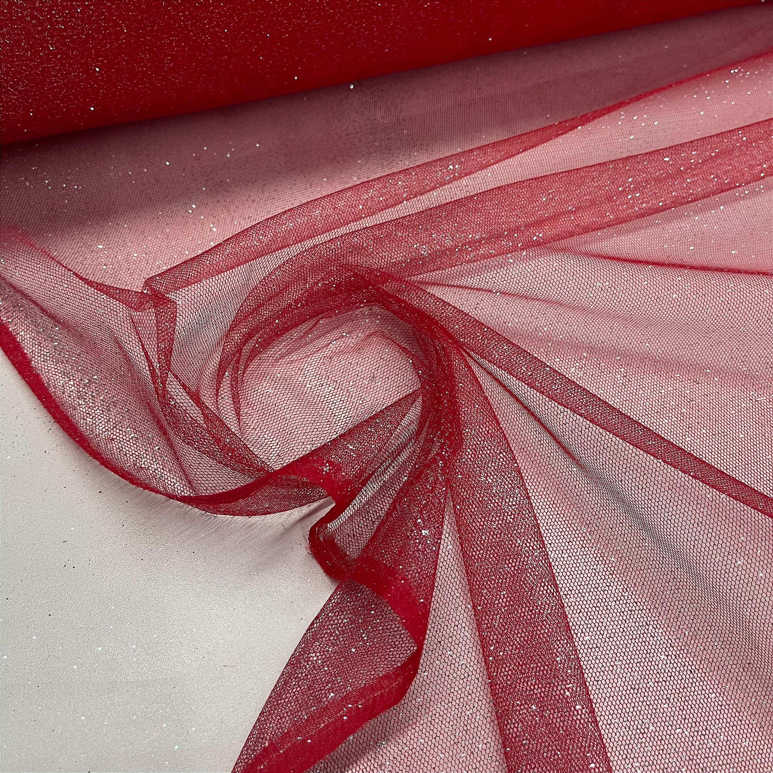 Tule com glitter é um tecido leve, translúcido e brilhante, decorado com glitter para um efeito glamoroso. É usado em roupas de festa, acessórios e decoração de eventos, proporcionando um toque sofisticado e festivo.