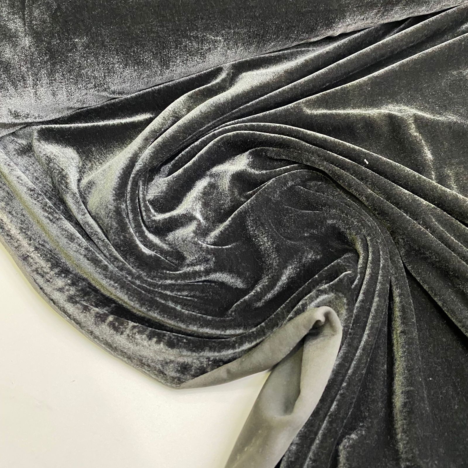 Bastante brilhoso, o Veludo Cristal tem como base a malha sendo bastante elástico. Seu brilho varia conforme a incidência de luz aplicada em sua superfície. O veludo traz elegância à peça, se adaptando desde modelagens mais justas até mais amplas, e permitindo ótimo caimento. É mais indicado para criação de vestidos, calças e jaquetas de inverno. Composto por poliéster e elastano, garante um toque confortável na pele não sendo necessário o uso de forros. É resistente e flexível e possui leves ranhuras que lembram uma marca d' água. Excelente caimento.