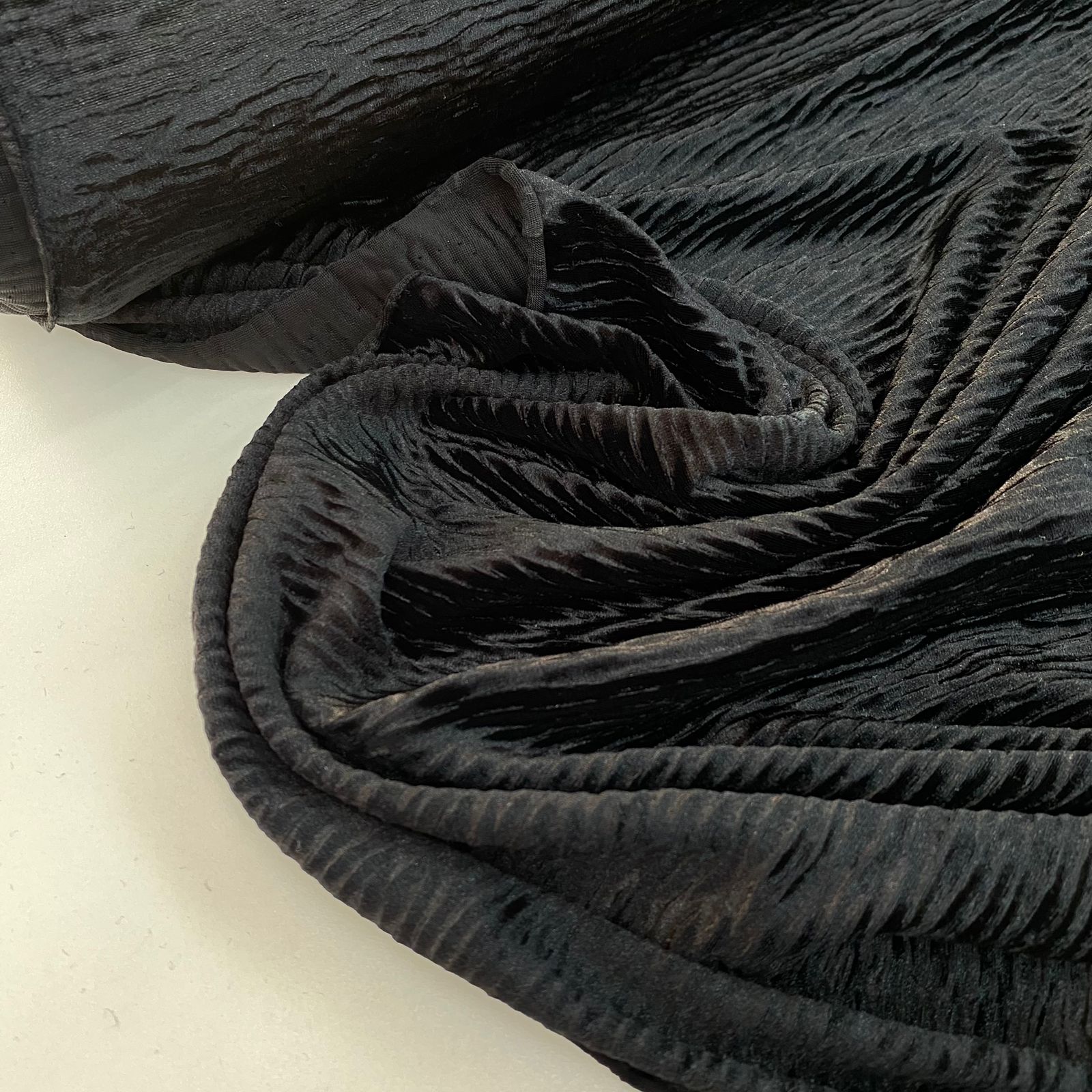 O Veludo Spandex Plissado é um tecido elegante e versátil, conhecido pelo seu brilho suave, toque macio e caimento impecável. Sua superfície aveludada ganha ainda mais charme com o efeito plissado, que cria movimento e profundidade nas peças. A presença de elastano garante maleabilidade, conforto e excelente adaptação ao corpo.