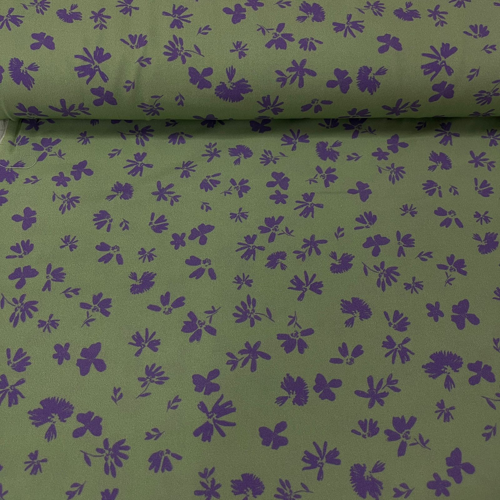 Viscose Estampada Fundo Verde com Florzinhas Roxas