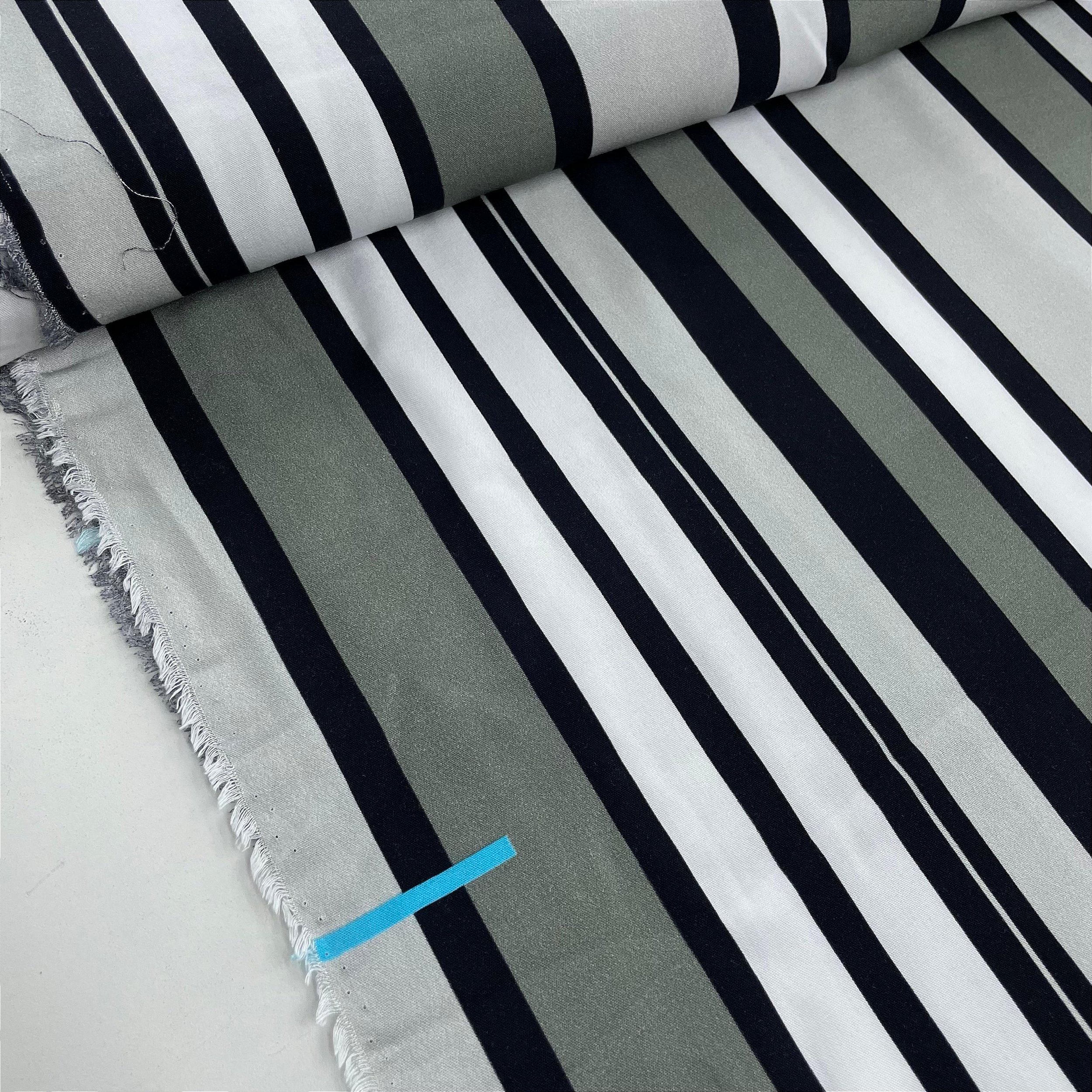 Viscose Estampada Listras Brancas, Pretas e Cinzas