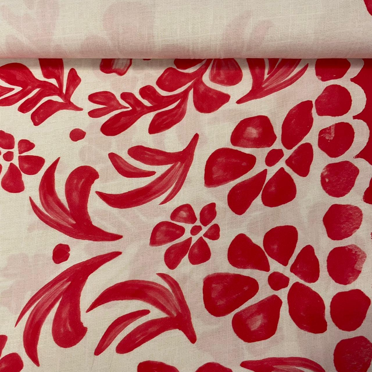 Viscose Estampado Fundo Off White com Floral Vermelho